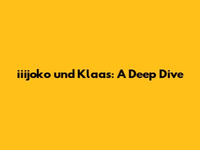 Iiijoko Und Klaas: A Deep Dive