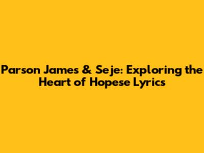 Parson James & Seje: Hopese Lyrics Deep Dive
